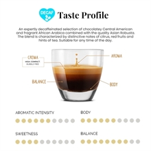 Vergnano Decaf Nespresso kaffekapsler byder på en udsøgt koffeinfri oplevelse, hvor nøje udvalgte Arabica-bønner fra Centralamerika og Afrika møder den fine kvalitet af asiatisk Robusta. Denne harmoniske blanding er skabt med omhu for at bevare en kompleks smagsprofil, der fremhæver karakteristiske noter af frisk citrus, røde frugter og subtile antydninger af te. Uanset tidspunktet på dagen kan du nyde en balanceret og aromatisk kop kaffe, som kombinerer friskhed med en blød, rund eftersmag – alt sammen uden koffein. Kapslerne er kompatible med Nespresso-maskiner og sikrer en nem og bekvem måde at nyde en kvalitetskaffe uden koffein på.