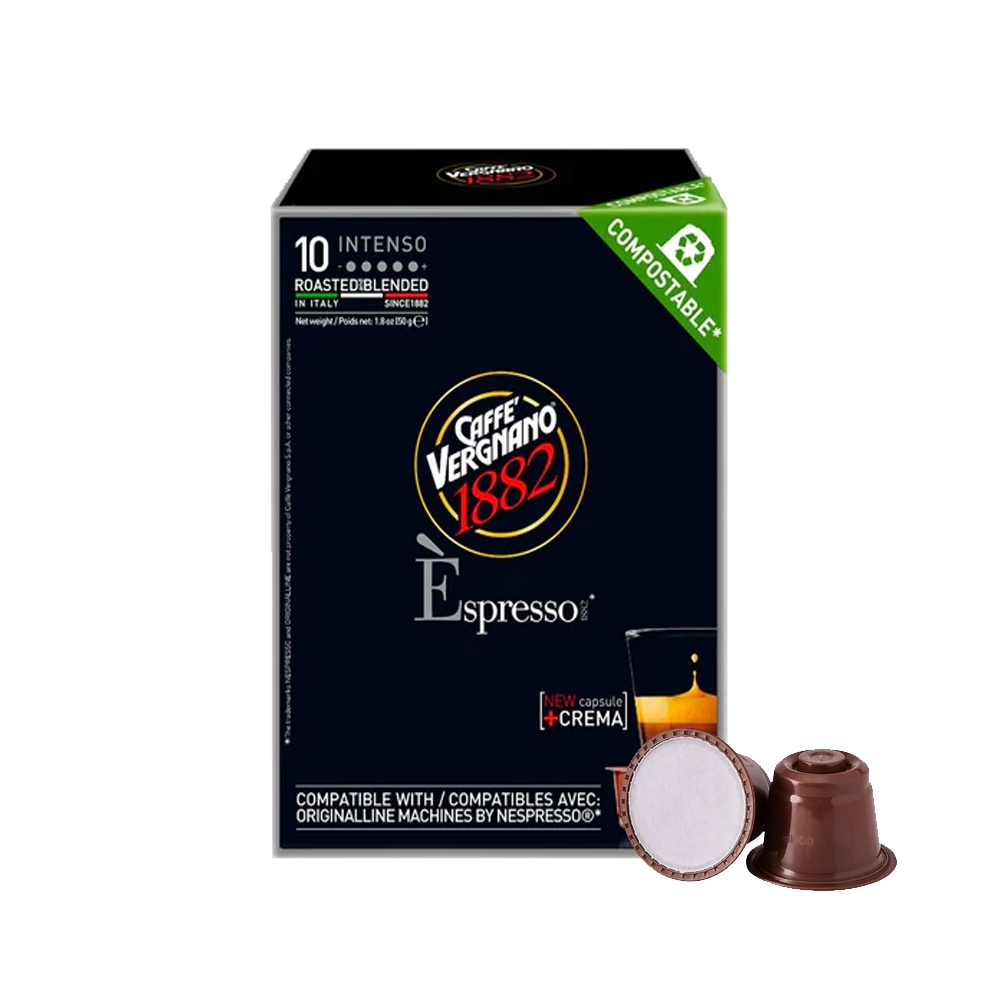 Kapslerne er fuldt komposterbare og kan bortskaffes i det organiske affald uden at tømme kaffeindholdet. Ved genanvendelse omdannes kapslerne til kompost, som bruges til at gøde jorden. Kapselomslaget er fremstillet af et biologisk nedbrydeligt polymer, der tåler høje temperaturer og tryk, og sikrer optimal ydeevne under kaffebrygningen. Ved at vælge Vergnano’s komposterbare kapsler får du en kaffeoplevelse, der er god i enhver forstand – både i smag og for miljøet.