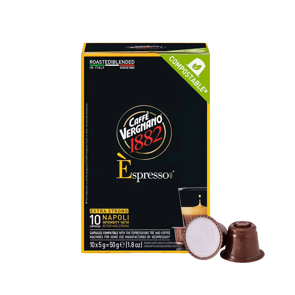 Kapslerne er fuldt komposterbare og kan bortskaffes i det organiske affald uden at tømme kaffeindholdet. Ved genanvendelse omdannes kapslerne til kompost, som bruges til at gøde jorden. Kapselomslaget er fremstillet af et biologisk nedbrydeligt polymer, der tåler høje temperaturer og tryk, og sikrer optimal ydeevne under kaffebrygningen. Ved at vælge Vergnano’s komposterbare kapsler får du en kaffeoplevelse, der er god i enhver forstand – både i smag og for miljøet.