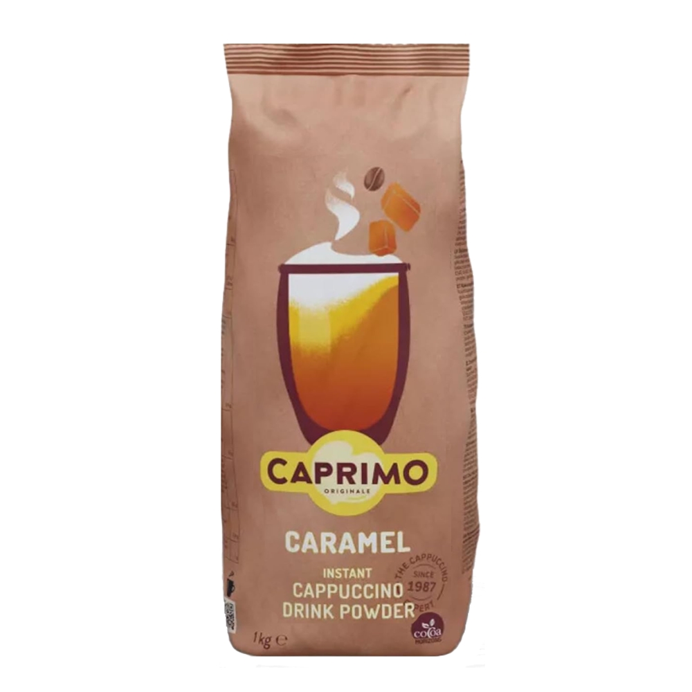 Med Caprimo Cappuccino Caramel kan du lave en god velsmagende cappuccino med smag af karamel. Den lette lækre smag karamellen tilfører kaffen, giver dig en afbalanceret behagelig cappucino. Denne cappuccino variant fra Caprimo er oplagt til brug i fuldautomatiske maskiner, både på kontororet i butikker så du kan nyde en ekstra appetitlig cappuccino med en god skum på toppen. Cappuccinopulveret kan naturligvis også anvendes derhjemme, da man også sagtens selv kan blande kogende vand eller varm mælk i. Pulveret kan også bruges som topping til sort kaffe hvis man ønsker en cappuccino.