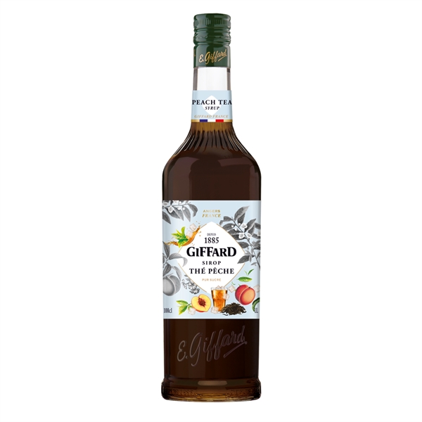 Giffards fersken iste sirup har en blød og frugtig smag af solmodne ferskner kombineret med lette noter af sort te. Smagsprofilen er afrundet og forfriskende, hvilket gør siruppen til et populært valg i kolde drikke med et naturligt frugtpræg.