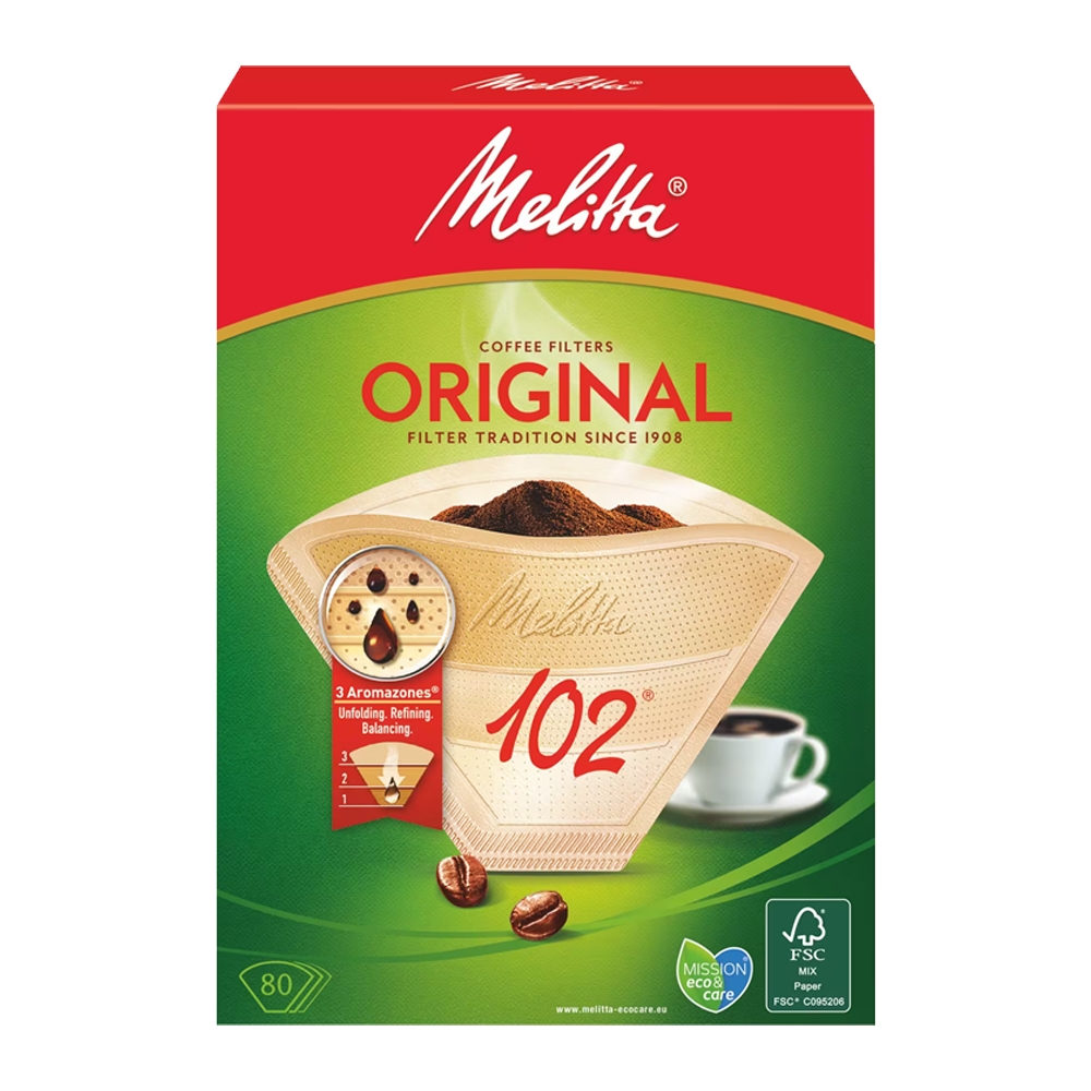 Melittas originale kaffefiltre gør det muligt at brygge kaffen med perfekt gennemløbstid. Hele aromaen kommer ned i kopppen, mens de bitre elementer fastholdes i kaffegrumset. Filtrene er fremstillet af nordisk papirmasse uden genbrugsfibre og er 100% komposterbare. Kanterne præges mekanisk, hvilket betyder, at der hverken bruges lim eller andre klæbemidler. Kaffefiltrene er miljøvenlige med både Svane- og FSC-mærket.