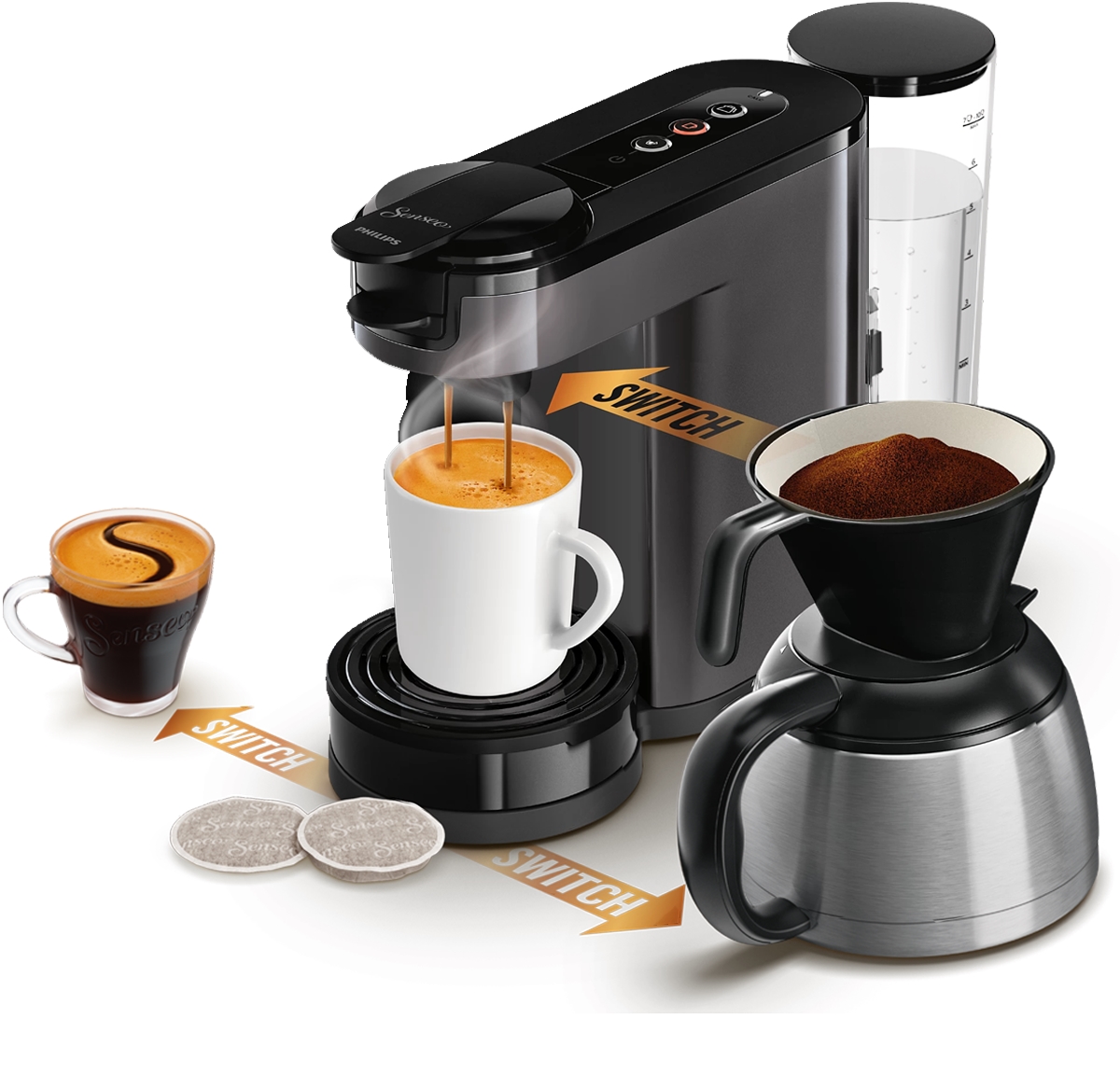 Forside » Senseo® » Senseo® Kaffemaskiner » Senseo® Switch 3i1 Philips Senseo Switch 3in1 Base Ikke på lager Send mail når varen kommer på lager igen Lev. 4 hverdag(e) ved køb af 1 ,1.099,00698,00DKK DKKEURNOKSEK TILBUD SPAR 400 kr! • Gratis levering - vælg mellem flere leveringsløsninger (se "Vælg forsendelse" til 0,00 DKK). Philips Senseo Switch 3in1 er den eneste kaffemaskine på markedet som giver dig filterkaffe- og kaffepudefunktion i ét: Vælg helt frit mellem en kande, et krus eller en kop og bryg den perfekte kaffe til enhver lejlighed! Med Philips Senseo Switch 3in1 kan du nyde en lille kop eller et større krus Senseo-kaffe helt for dig selv med et silkeagtigt crema-lag og et utal af smagsvarianter at vælge imellem. Derudover giver maskinen dig mulighed for at brygge op til syv kopper klassisk filterkaffe direkte ned i den medfølgende termokande, så du kan nyde smagen af dit foretrukne filterkaffemærke og byde dine gæster på kaffe i en snæver vending. Termokanden holder på varmen i op til to timer, og kaffemaskinen bruger derfor ikke unødig energi på at holde kaffen varm. Maskinen benytter sig desuden af det patenterede Senseo® Kaffeboost kaffepude-system: Gennem 45 specialdesignede huller spredes det varme vand ud over den valgte kaffepude, hvorved kaffen brygges direkte ned koppen. Dette giver din kaffe den rigeste smag og sikrer helt frisk kaffe. Herudover sørger den indbyggede Crema plus-funktion for, at din kaffe får det fineste og blødeste crema-lag. Med Philips Senseo Switch 3in1 følger en vandtank med en kapacitet på 1 L, så du kan nyde hele 7 kopper kaffe uden påfyldning, og rengøring af både vandtank og kaffepudeholdere kan nemt klares i opvaskemaskinen. For at sikre en ensartet kvalitet er maskinen testet > 10.000 gange, og den smarte "Calc-Clean"-indikator fortæller dig, hvornår det er tid til at afkalkning. Derudover sørger den indbyggede autostop-funktion for at maskinen automatisk slukker af sig selv efter 30 minutter; smart af både spare- og sikkerhedshensyn! Læs mere om Philips Senseo Switch 3in1s funktioner her. OBS! Maskinen leveres uden kopper. Modelnr. HD6593/20 Navn Philips Senseo Switch 3in1 Farve Base Anvendelse Kaffepuder, kakaopuder og filterkaffe Antikalk-indikator Ja Autosluk Ja (30 min.) Kapacitet vandtank 1 L (7 kopper) Garanti Specifikationer TripleBrew, Kaffeboost, Crema Plus EAN-nr. 8710103851073 Varenr.: HD6593/20 Måske er du også interesseret i følgende produkter Mepal skraldespand titanium DKK 89,00 På lager SENSEO® afkalker - 1 afkalkningsprocedure DKK 69,0055,00 På lager