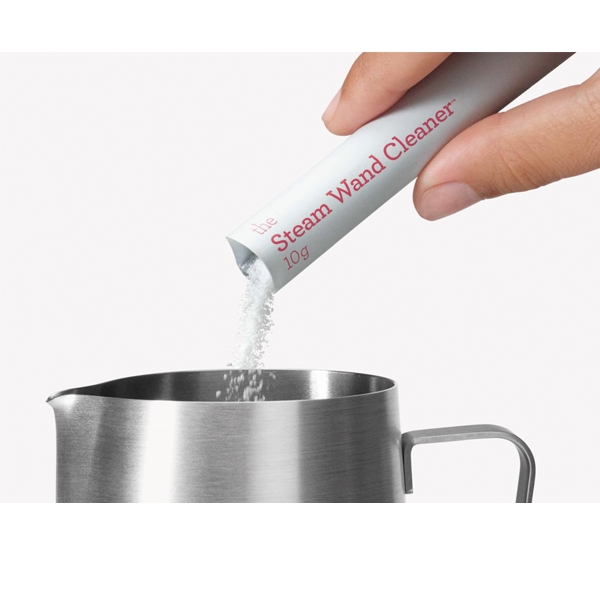 1. Tilsæt 1 pose Sage Steam Wand Cleaner (10 g) i en tom mælkekande.
